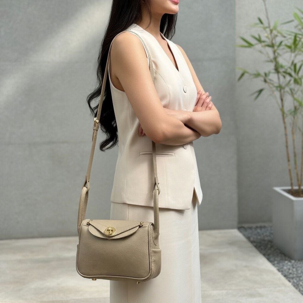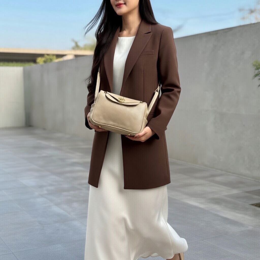 SL-05MK NOEL IN MILK TEA HIGH QUALITY LEATHER SLING TOTE BAG