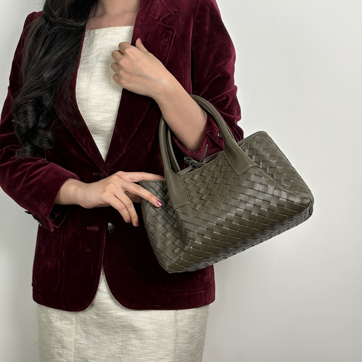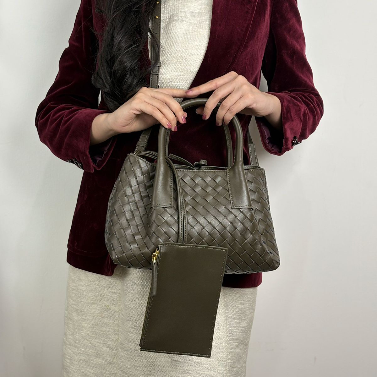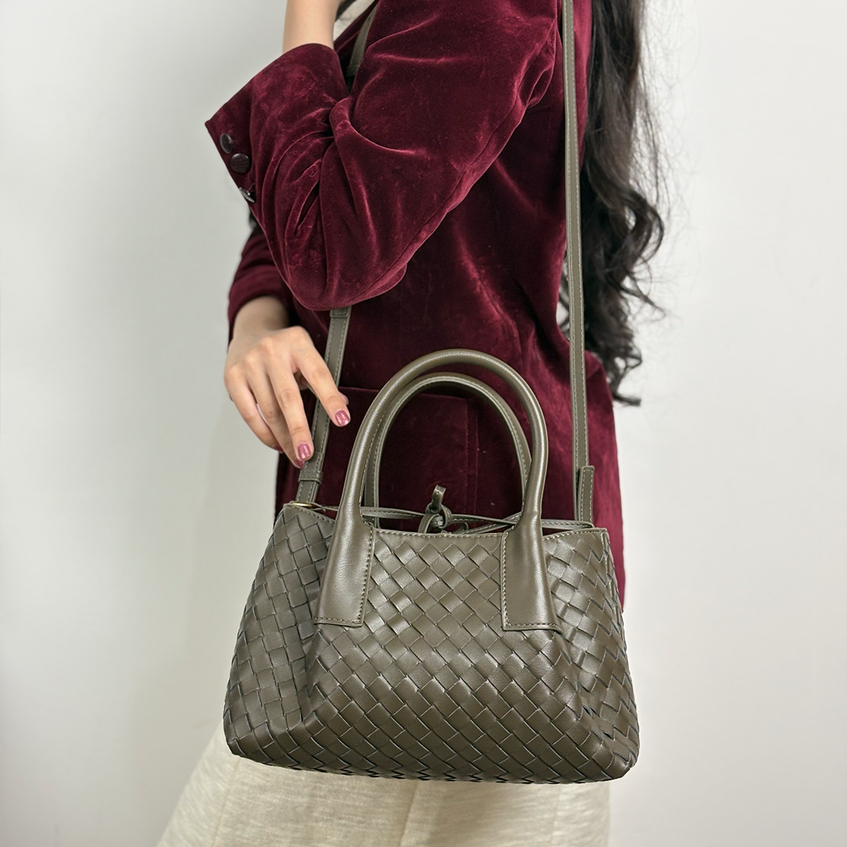 SWB-01OG ZIVANA OLIVE GREEN HIGH QUALITY LEATHER WOVEN SHOULDER AND SLING BAG