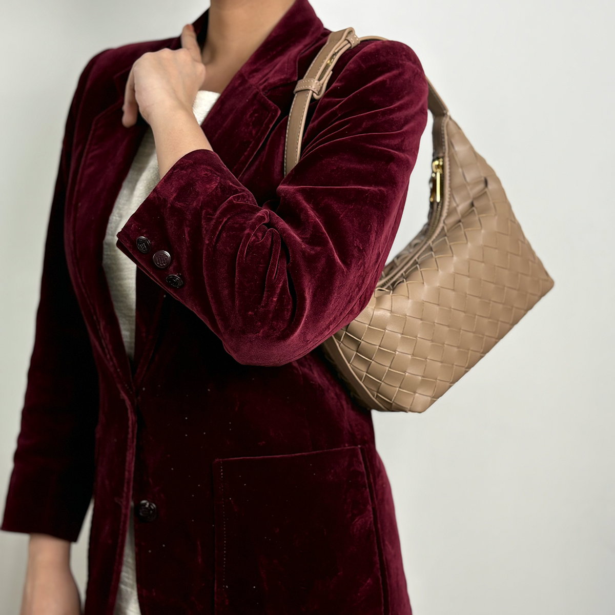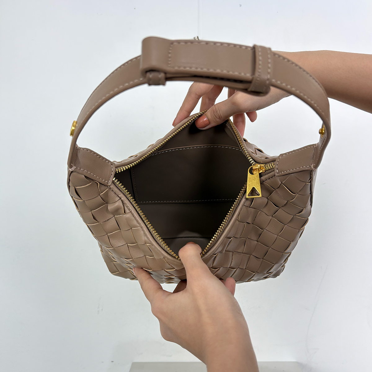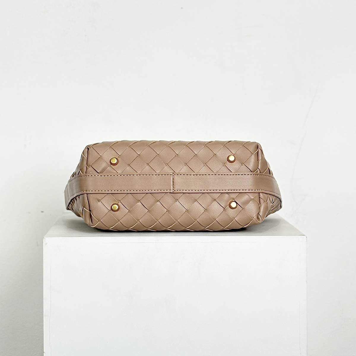 THB-03ND NUDE COLOR OF RIELA HIGH QUALITY LEATHER WOVEN SHOULDER BAG