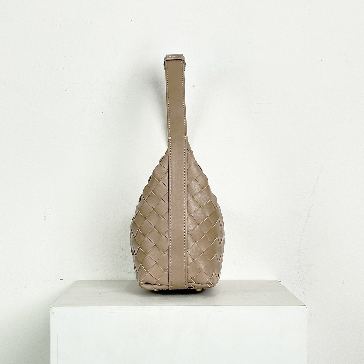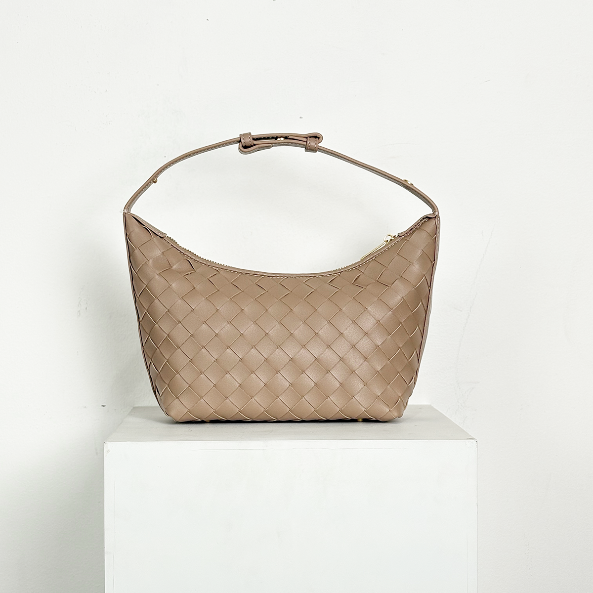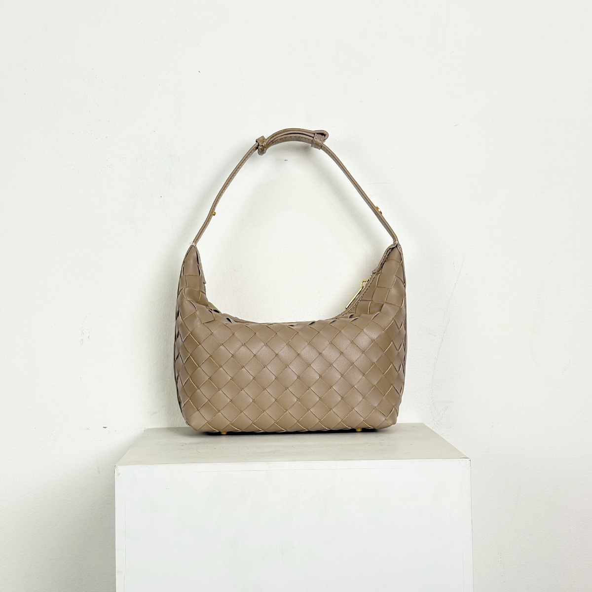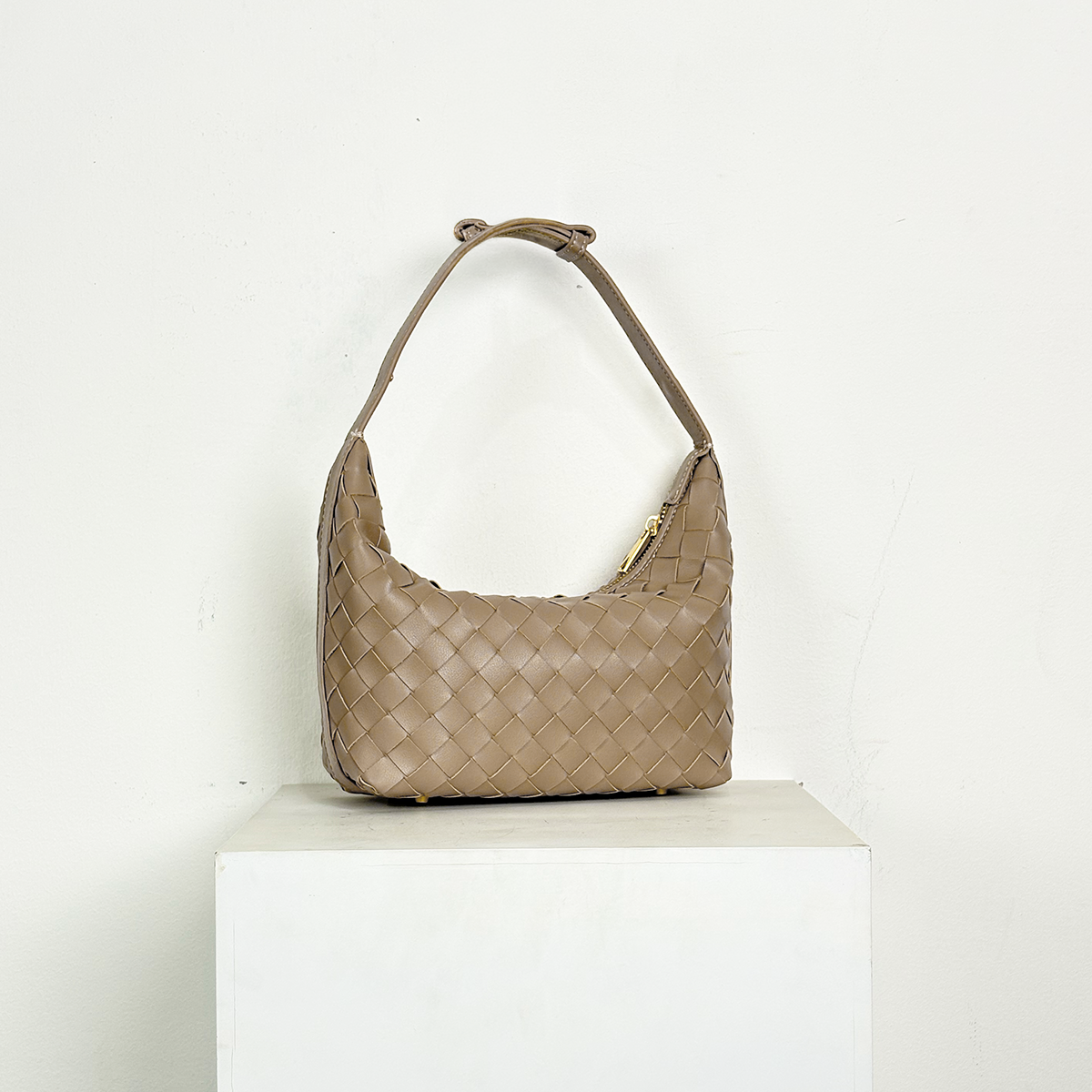 THB-03ND NUDE COLOR OF RIELA HIGH QUALITY LEATHER WOVEN SHOULDER BAG