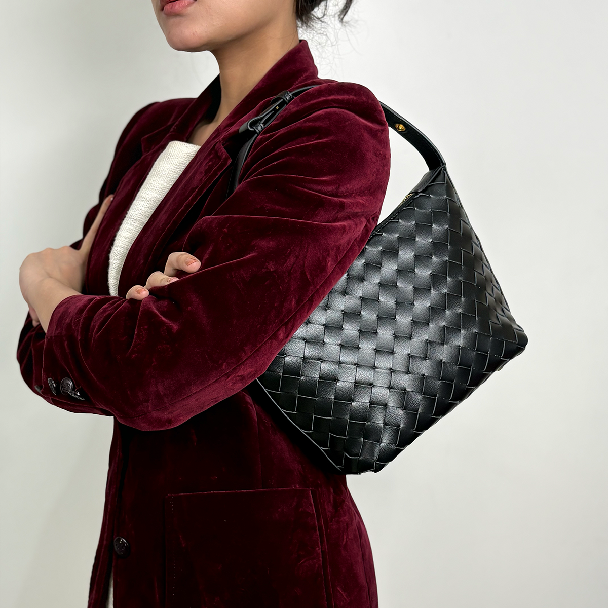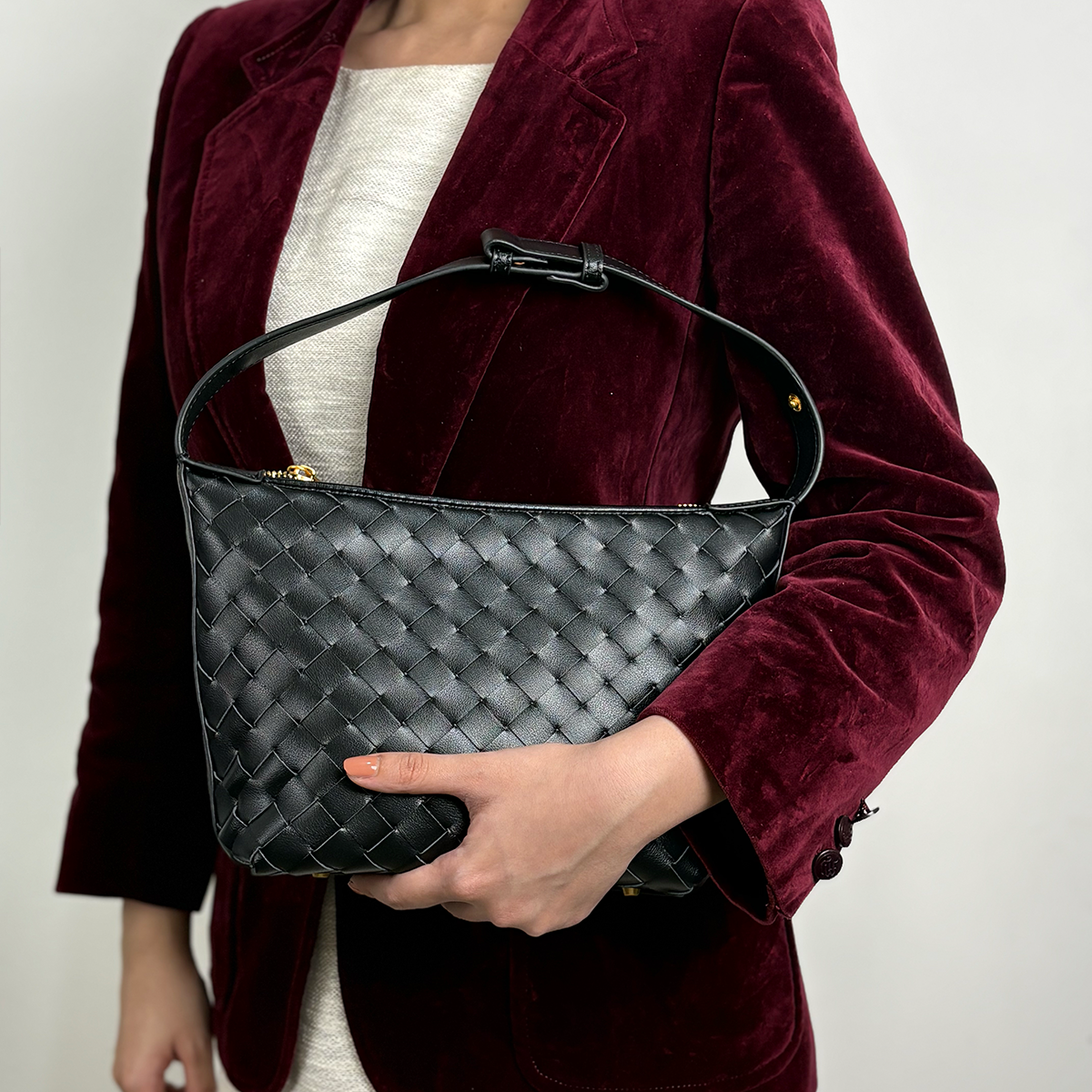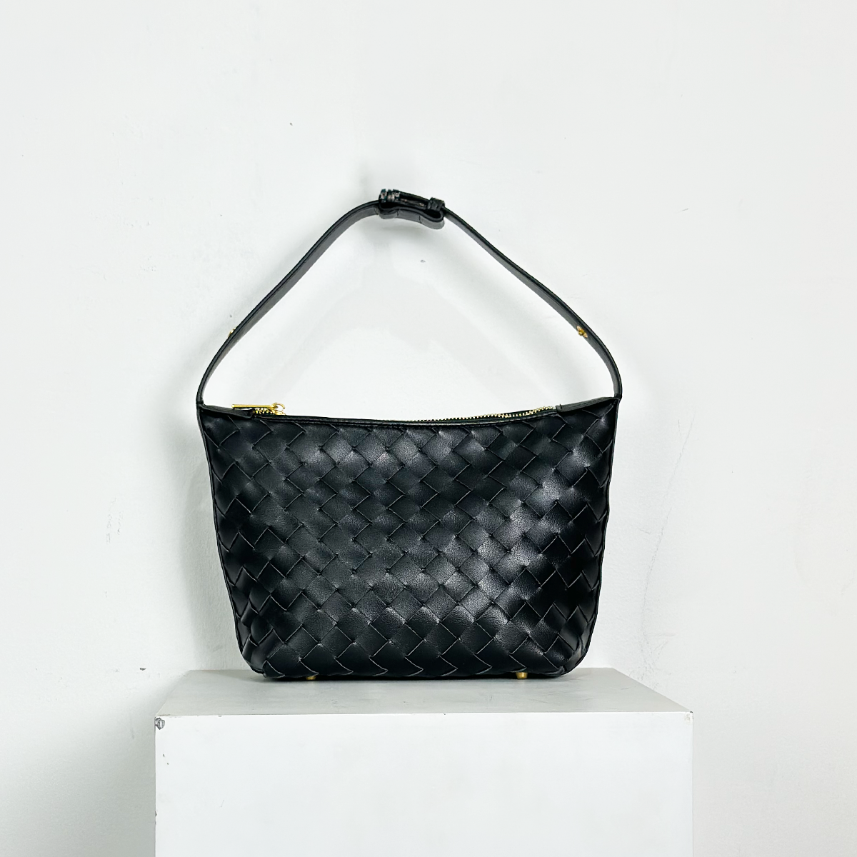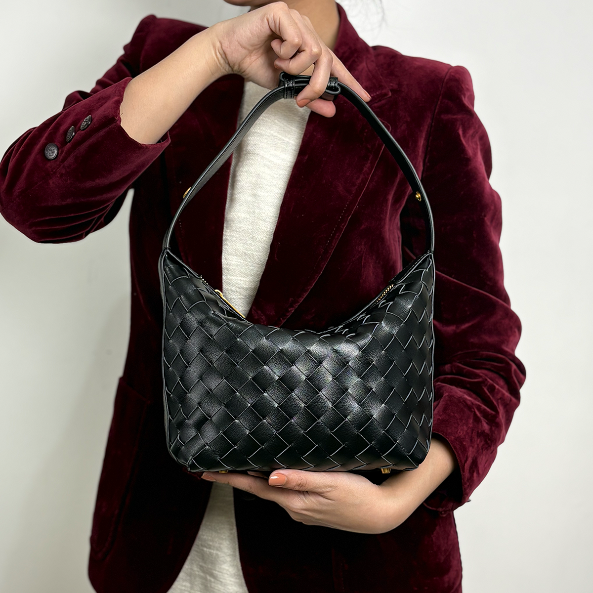 THB-04BK BLACK COLOR RILEY HIGH QUALITY LEATHER WOVEN SHOULDER BAG