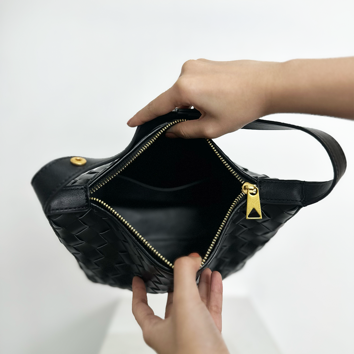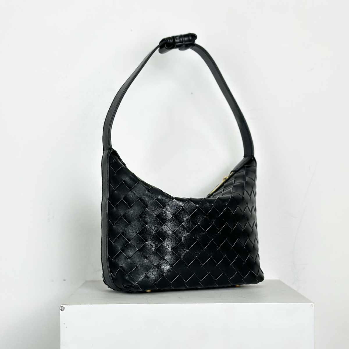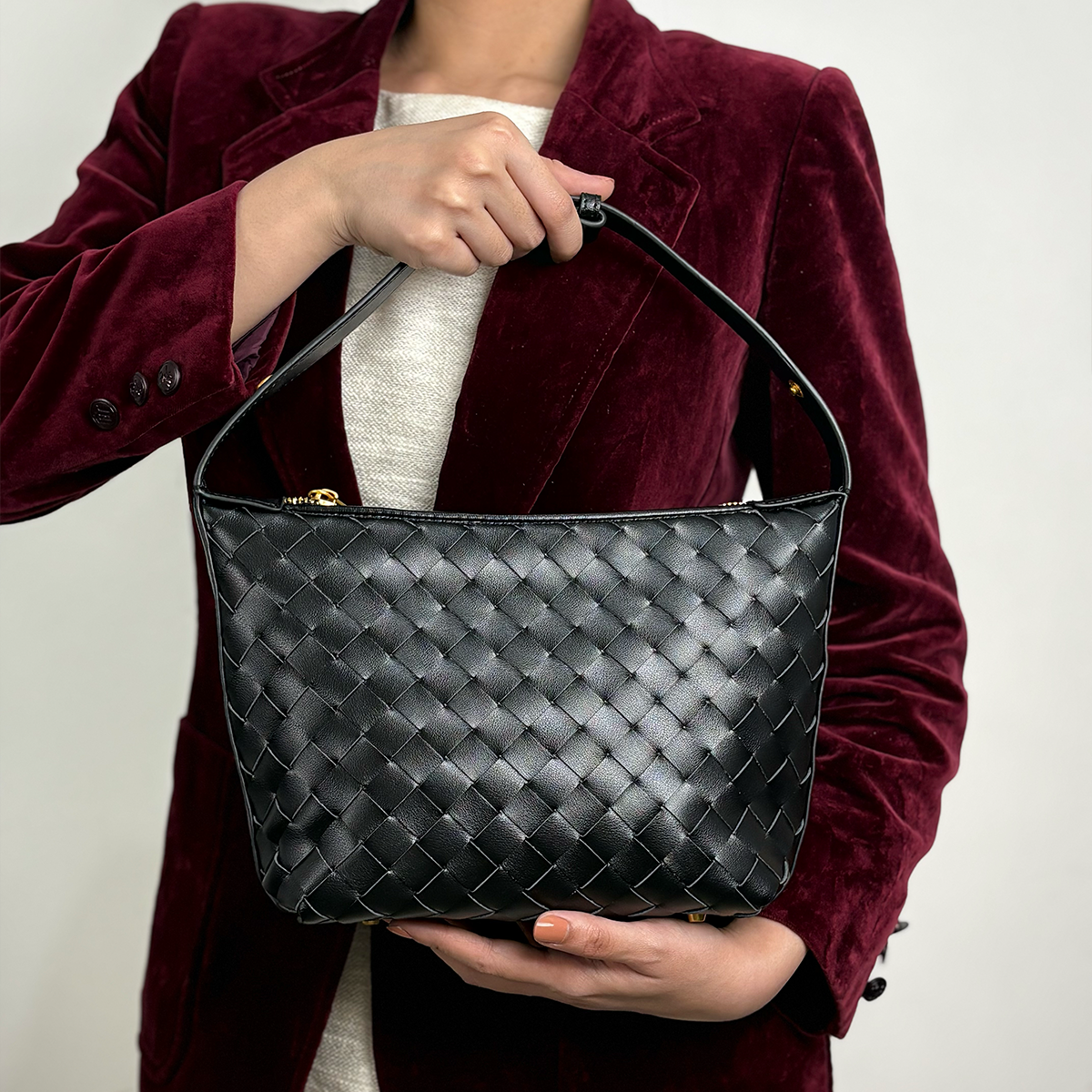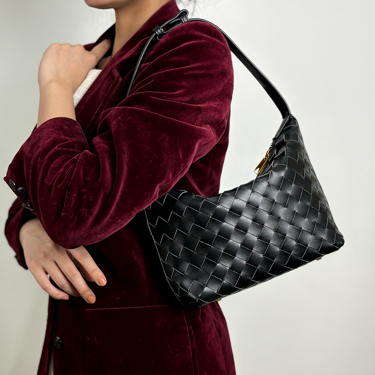 THB-04BK BLACK COLOR RILEY HIGH QUALITY LEATHER WOVEN SHOULDER BAG