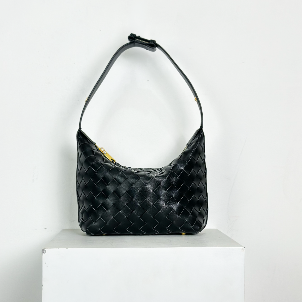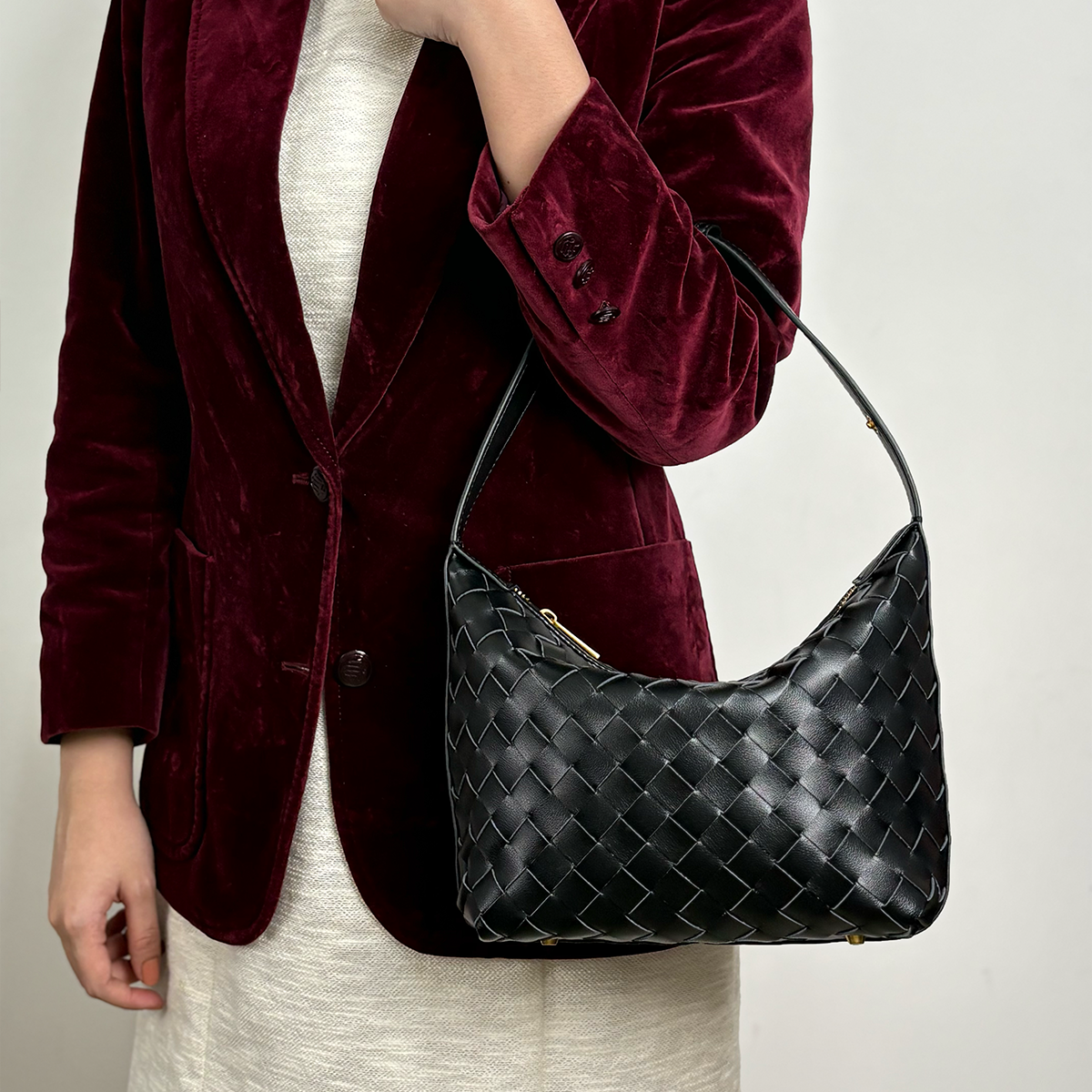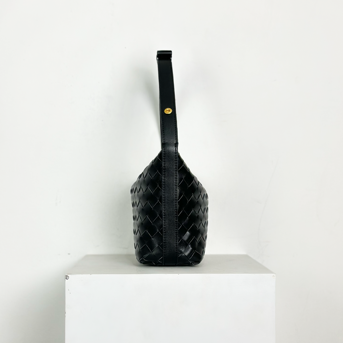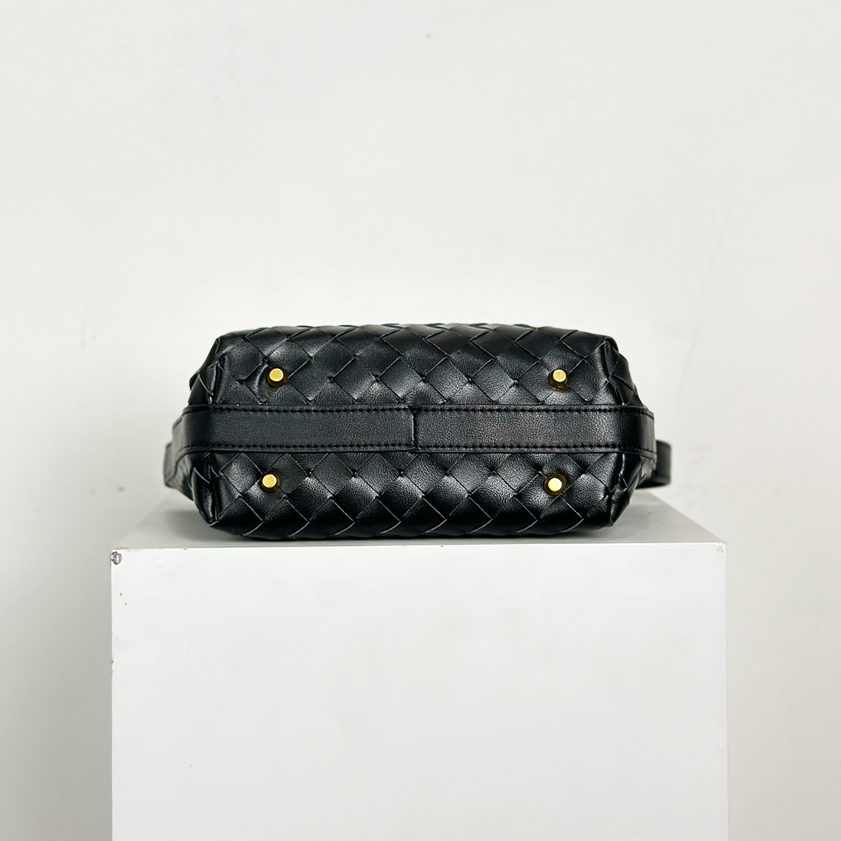 THB-04BK BLACK COLOR RILEY HIGH QUALITY LEATHER WOVEN SHOULDER BAG