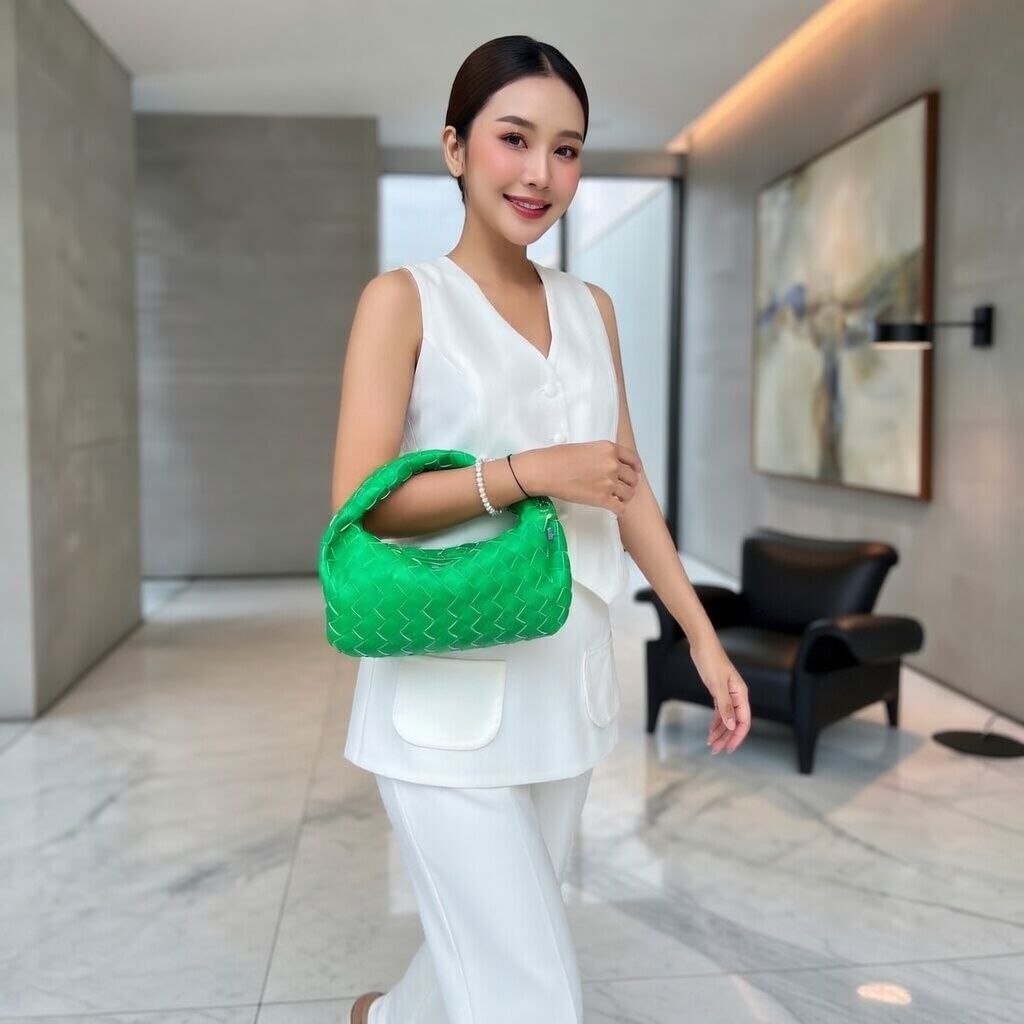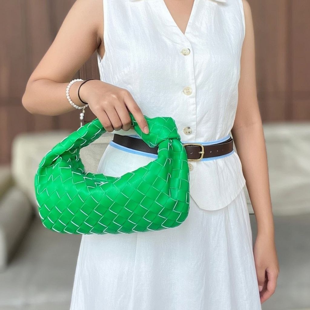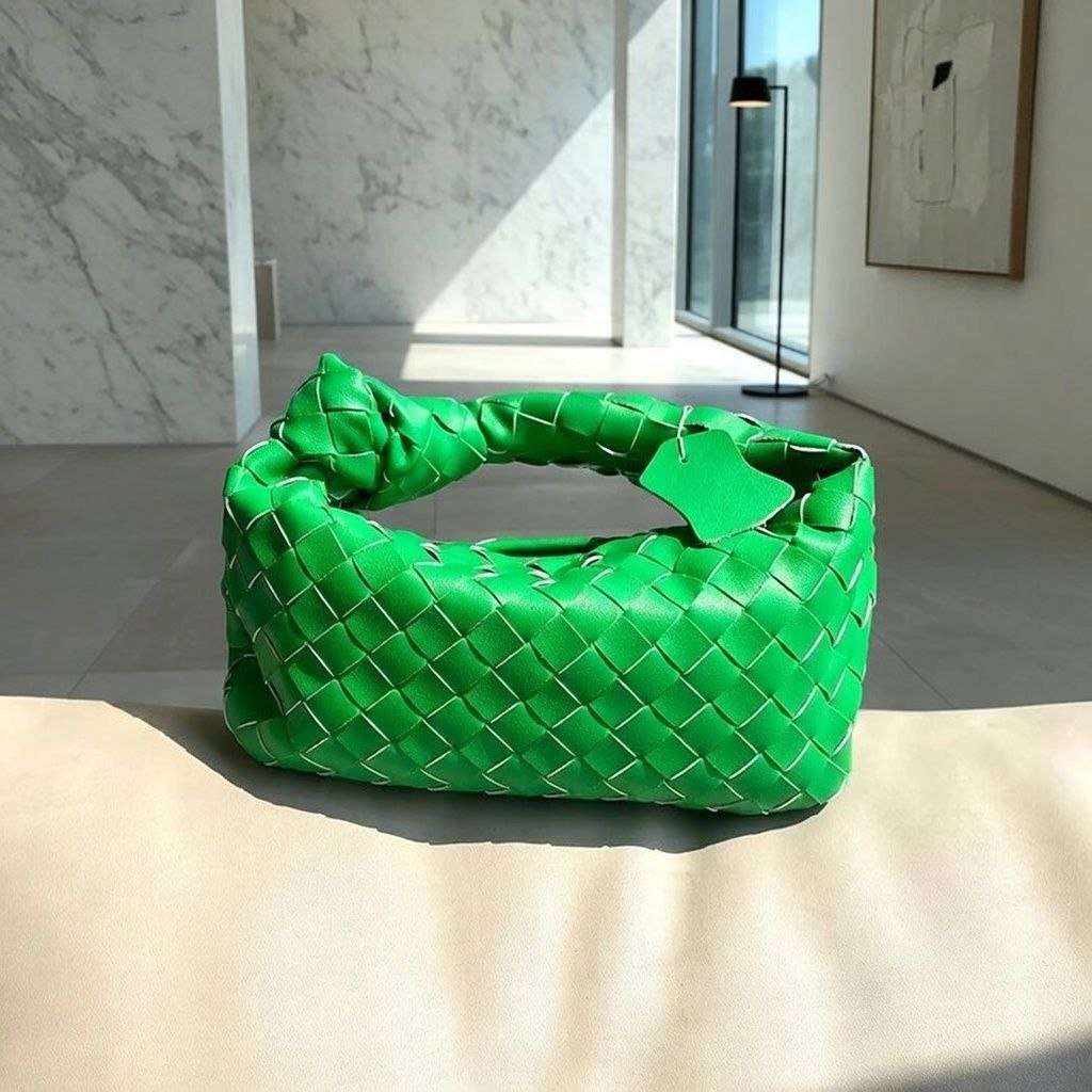 THB-05LG LITE GREEN ALFA HIGH QUALITY LEATHER WOVEN MINI DESIGNER HANDBAG