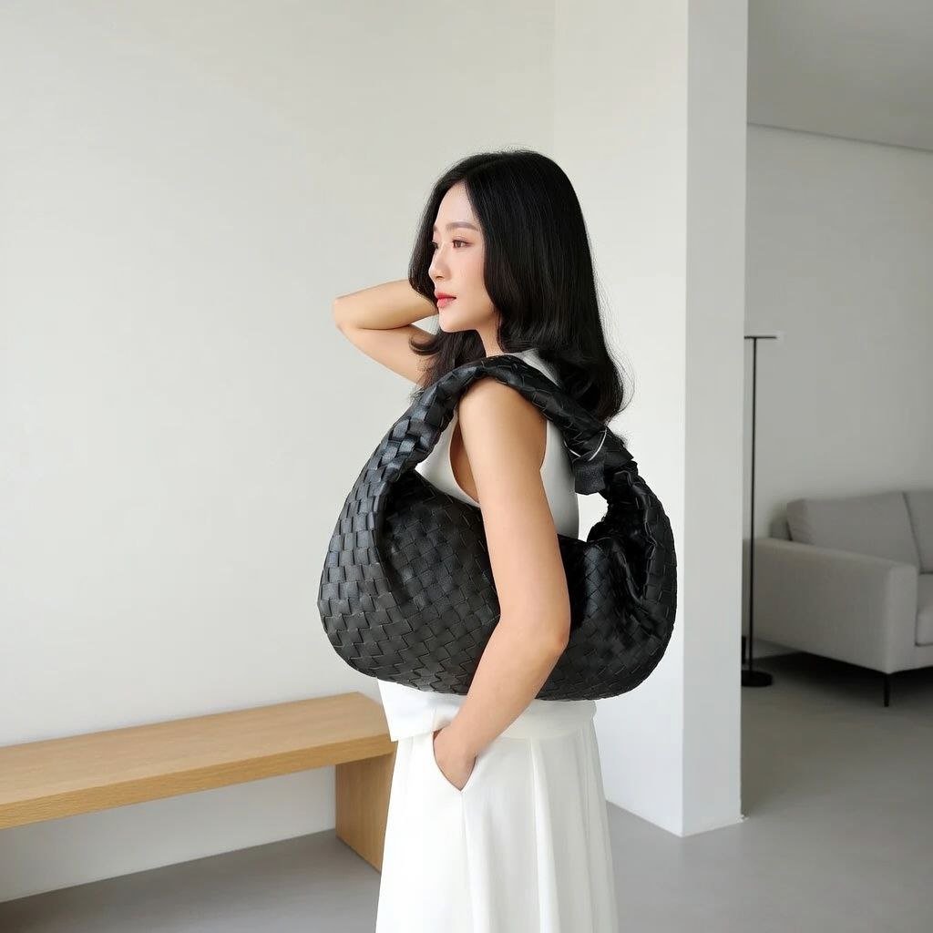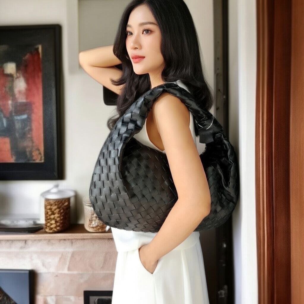THB-10BK BLACK VOLVA HIGH QUALITY LEATHER WOVEN DESIGNER HANDBAG