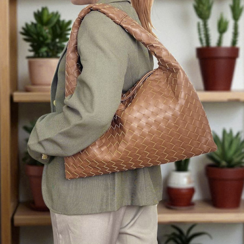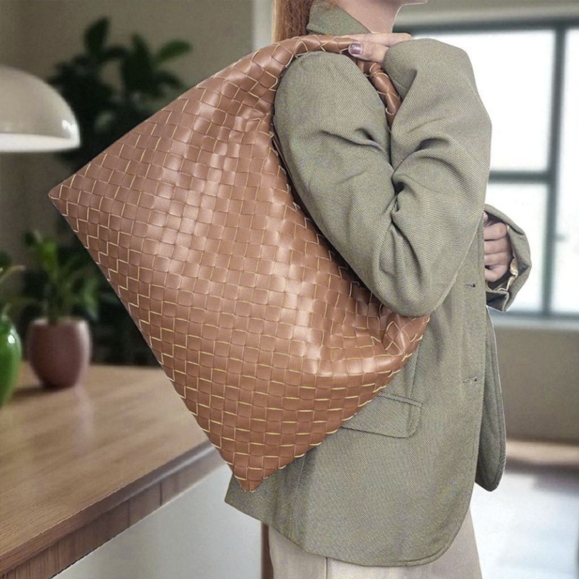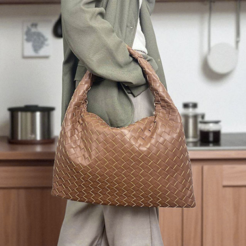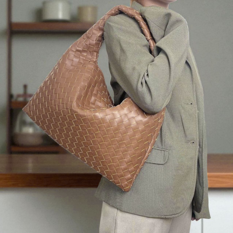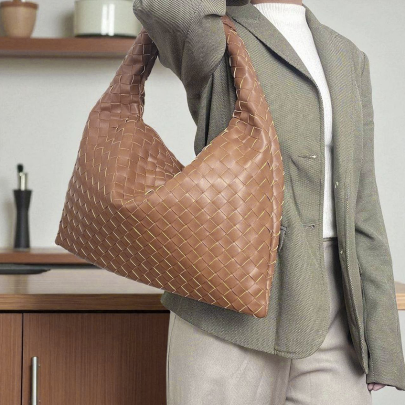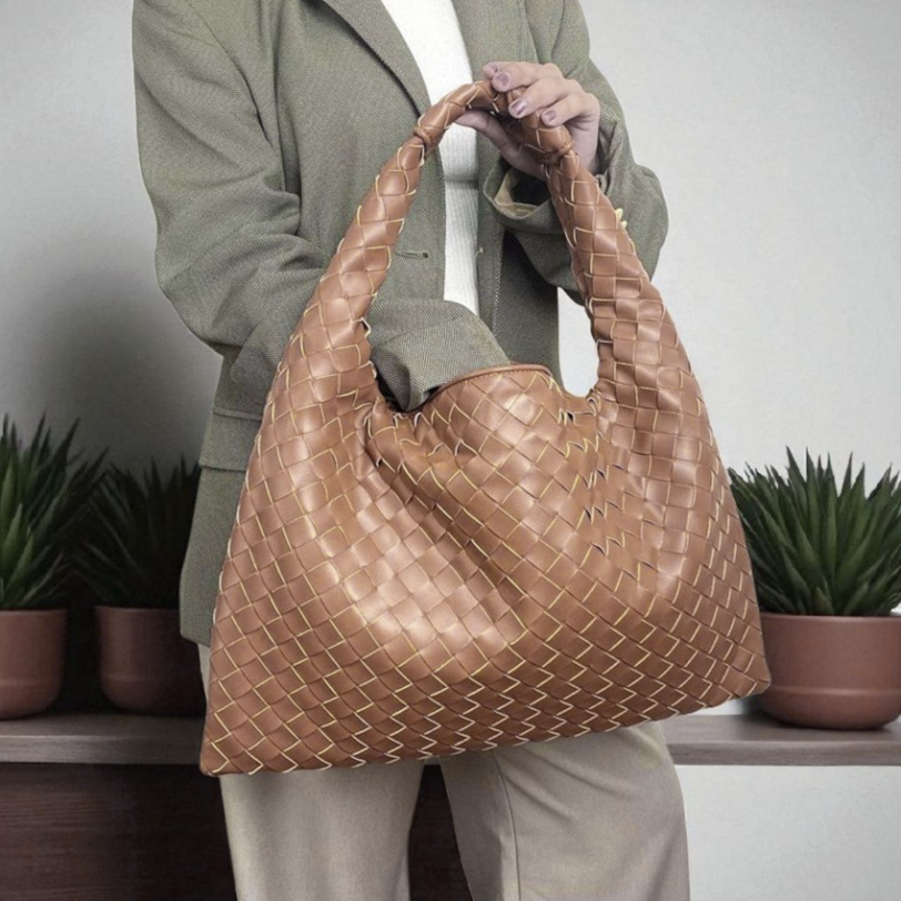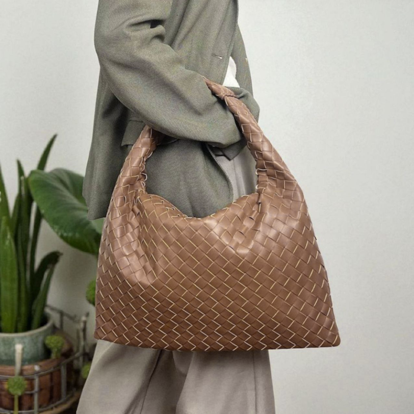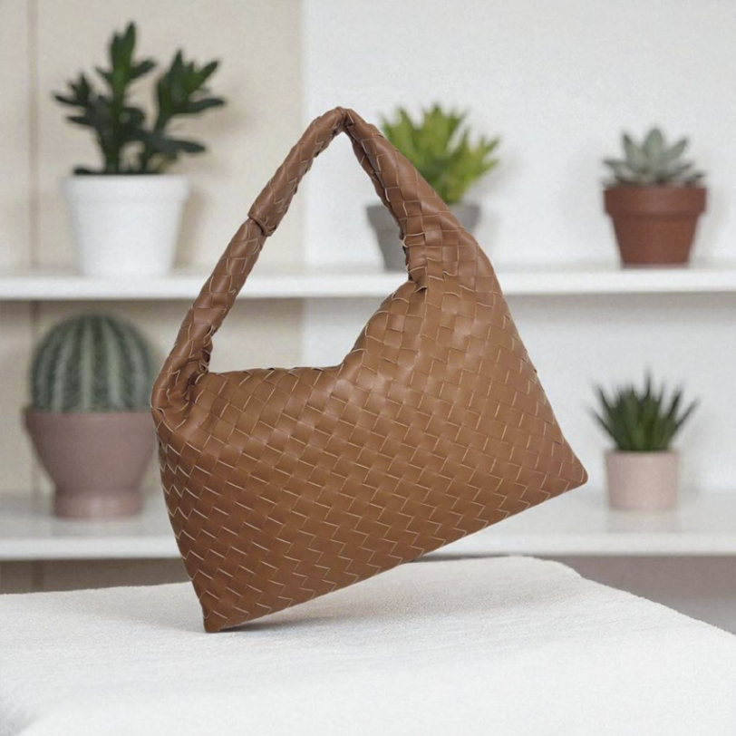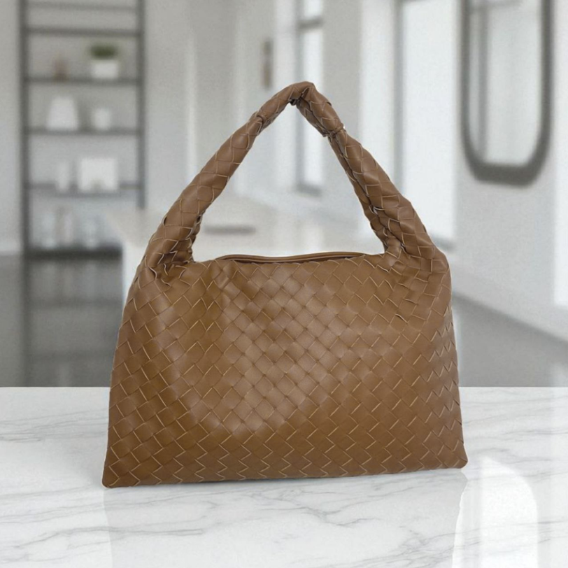 THB-10BR BROWN MICA WOVEN DESIGNER HANDBAG