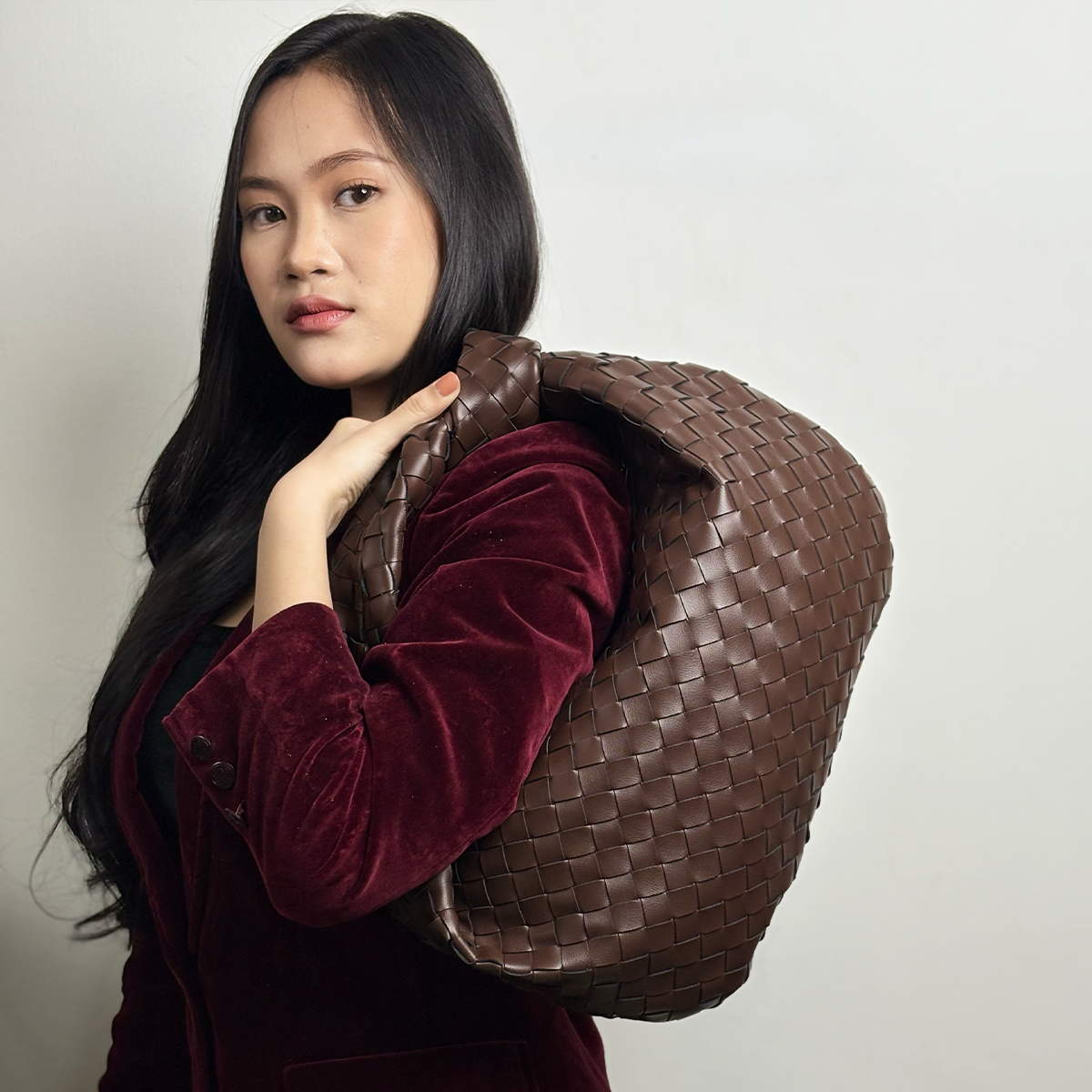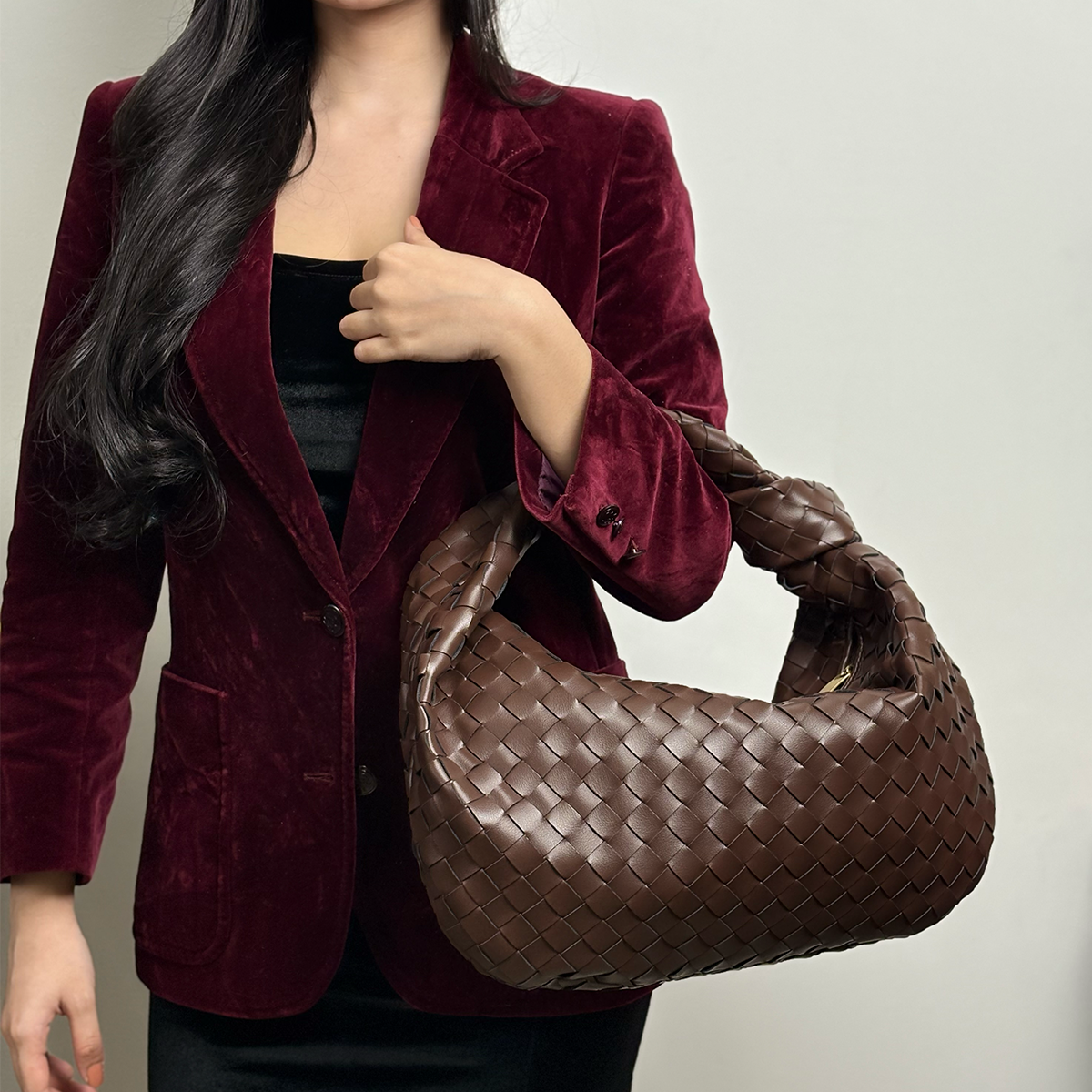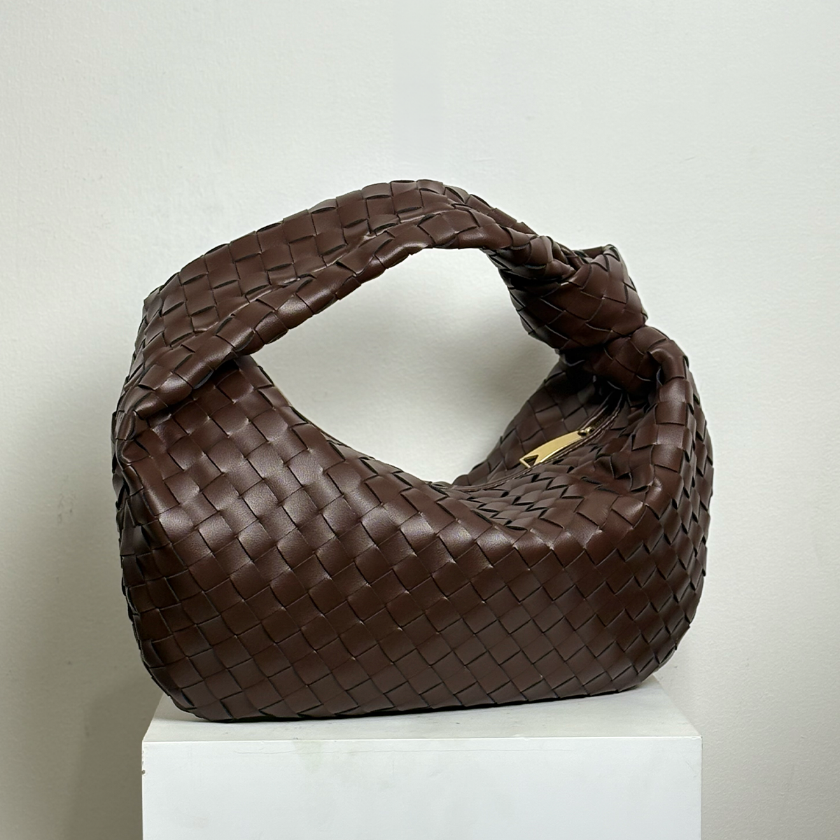 THB-10DB DARK BROWN YAZA HIGH QUALITY LEATHER WOVEN DESIGNER HANDBAG