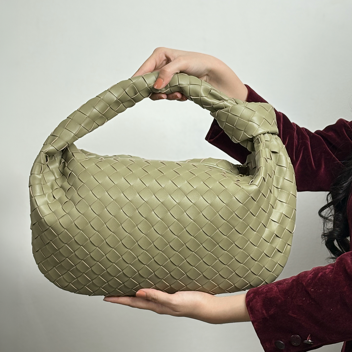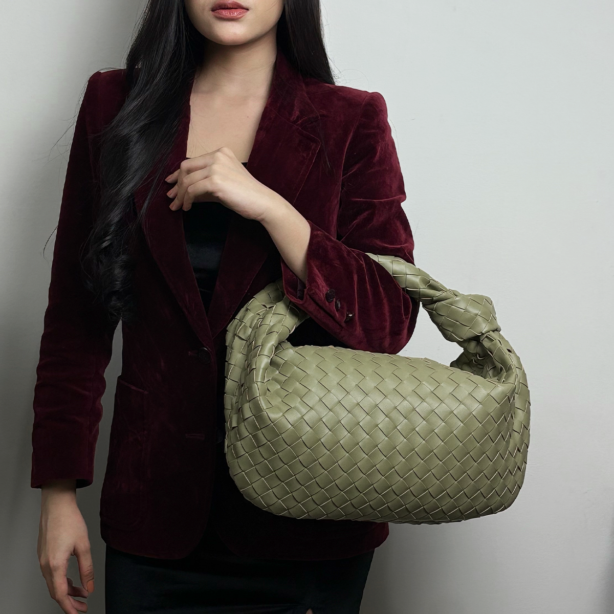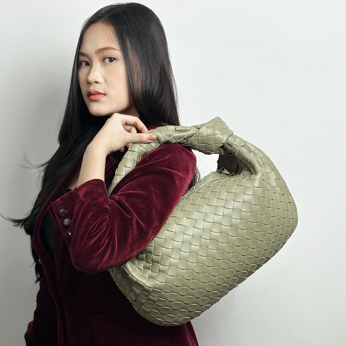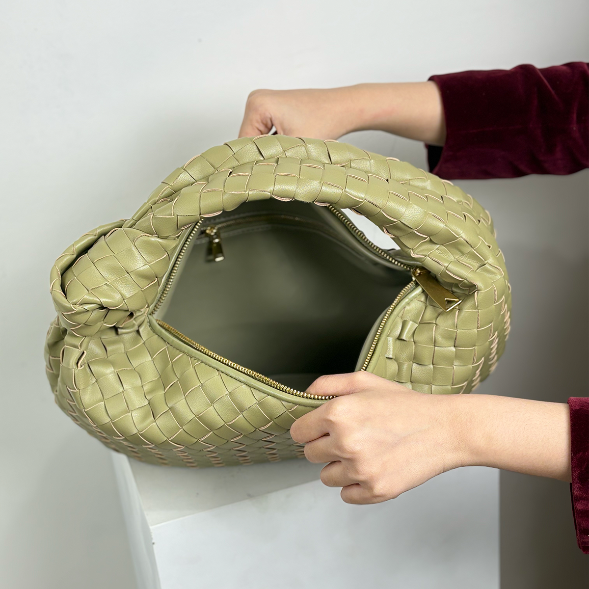 THB-10SG SAGE GREEN YAZA HIGH QUALITY LEATHER WOVEN DESIGNER HANDBAG