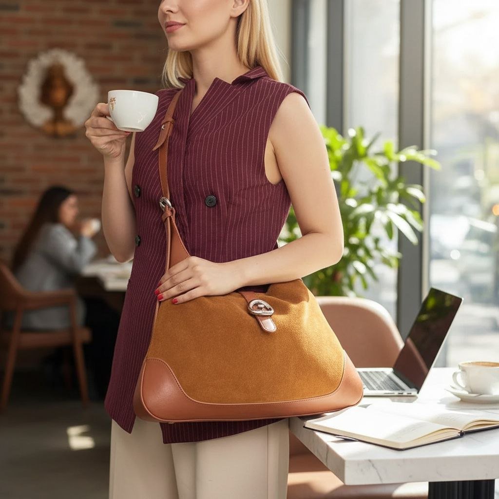 ZSD-02BR VALERA SUEDE BROWN SHOULDER BAG AND TOTE BAG