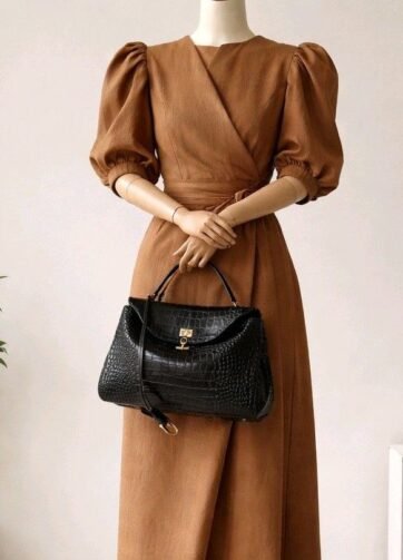 JS-10BC BLACK CROCO ZARYA HIGH QUALITY LEATHER TOTE SHOULDER AND CROSSBODY BAG