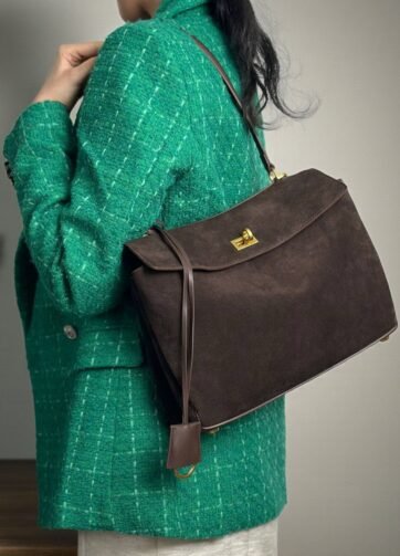JS-10SDB SUEDE DARK BROWN ZARYA HIGH QUALITY LEATHER SHOULDER AND CROSSBODY BAG