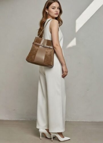 BBS-05MT FARSA MILK TEA HIGH QUALITY LEATHER SHOULDER AND CROSSBODY BAG